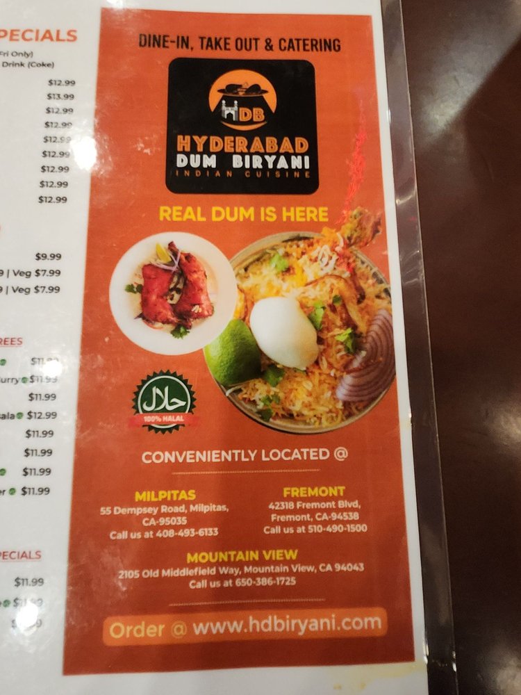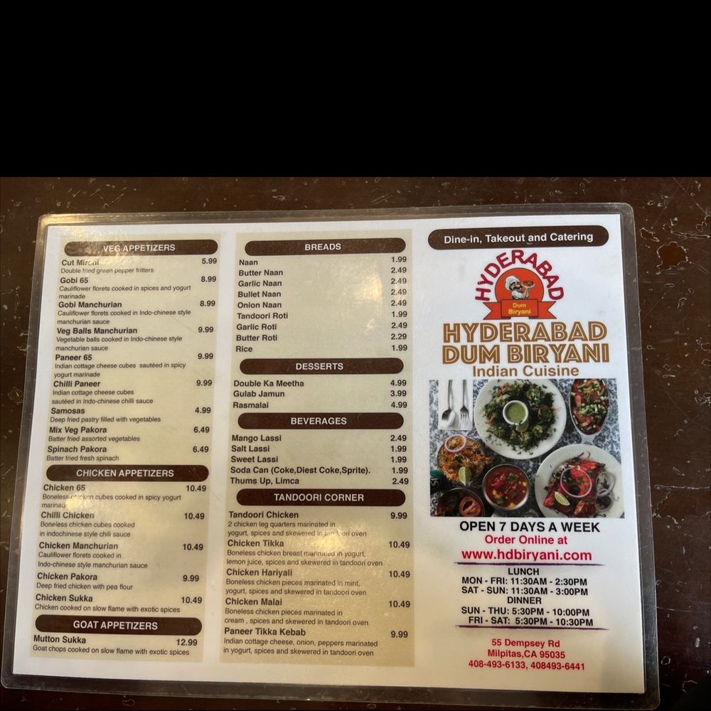 Hyderabad Dum Biryani offers a diverse menu with many vegetarian options and a focus on authentic Indian flavors. Located in Milpitas, CA, this restaurant provides delivery, takeout, and reservations. Customers rave about the butter chicken, chicken masala, and tandoori chicken dishes, as well as the flavorful malai kofta and paneer biryani. The shrimp tikka masala is a standout favorite among patrons. While some feel that the biryanis lack freshness, others praise the fragrant rice and well-seasoned dishes. The service is friendly, and the ambiance is casual and inviting. With a range of options for groups, families, and individuals, Hyderabad Dum Biryani is a go-to spot for those craving top-notch Indian cuisine.